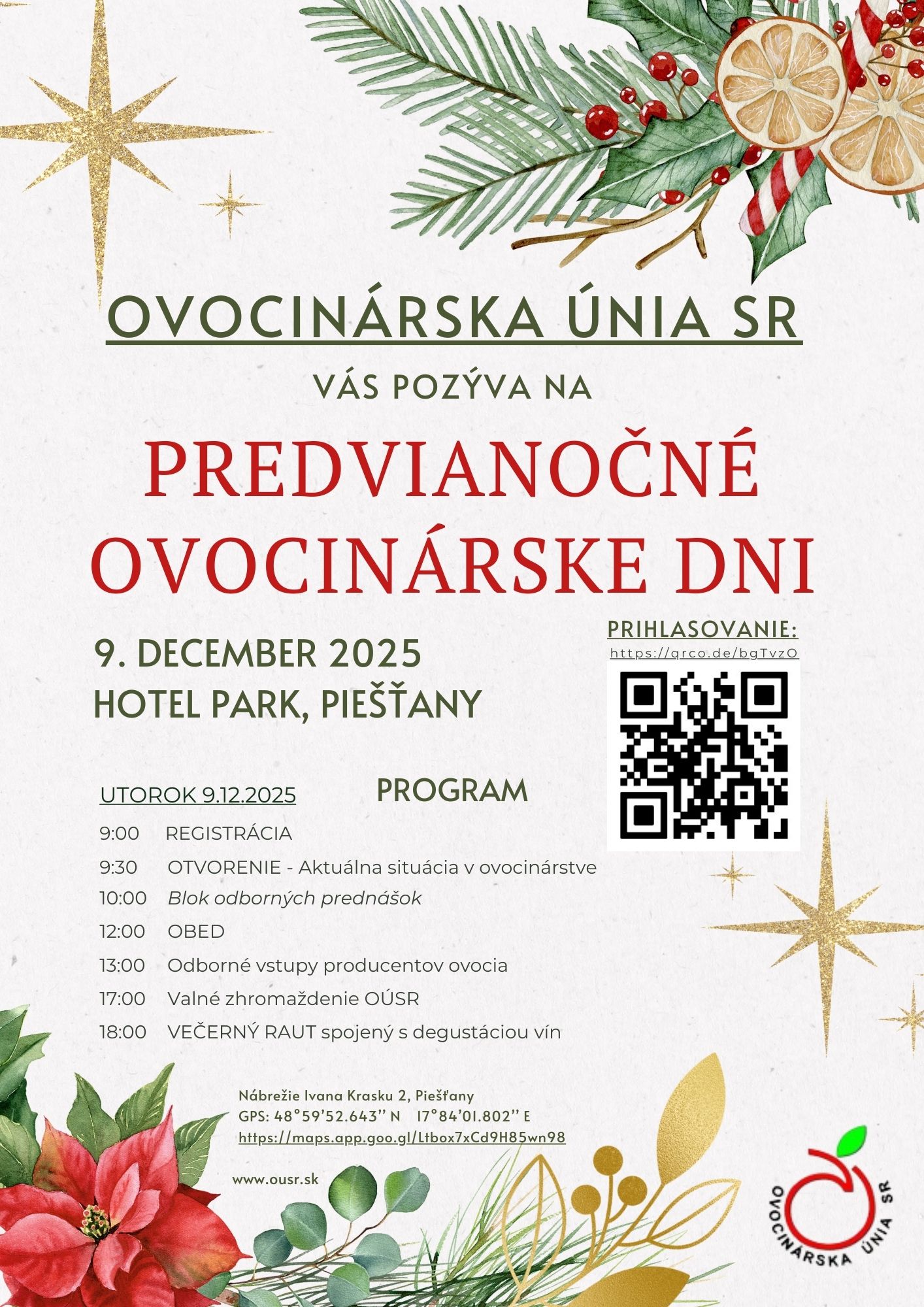 OVOCINÁRSKA ÚNIA SR VÁS POZÝVA NA PREDVIANOČNÉ OVOCINÁRSKE DNI